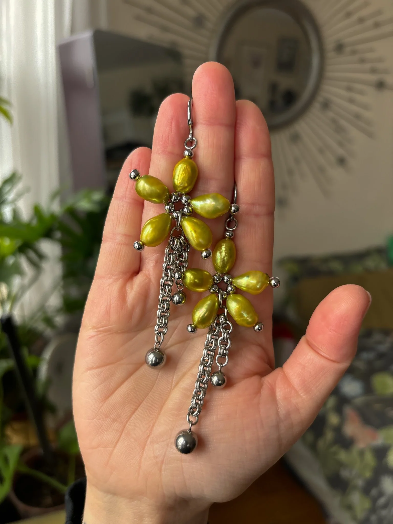 Made with old stock freshwater pearls and stainless steel. Made to order.