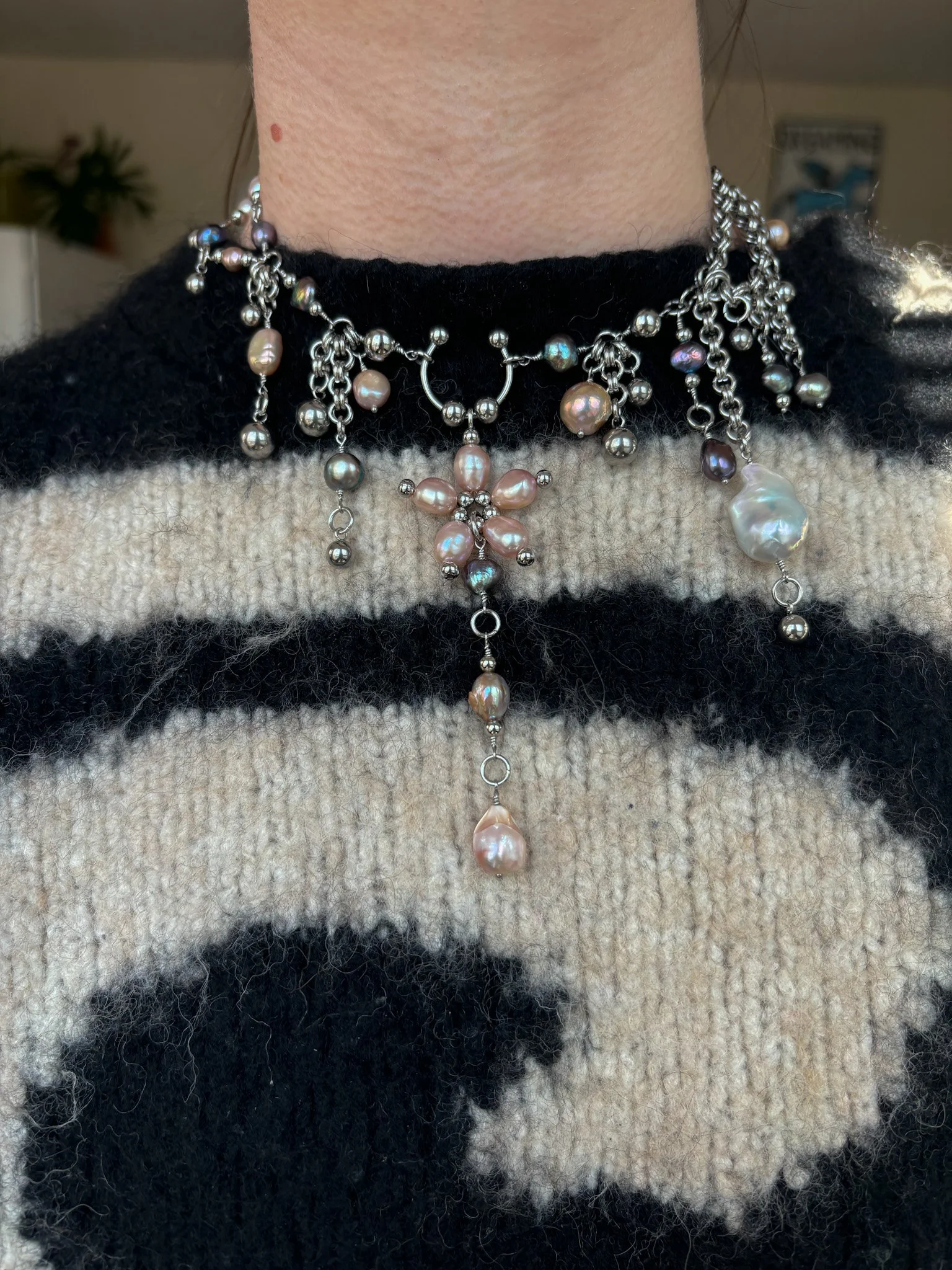 Made with old stock and recycled freshwater pearls and stainless steel. Size 12-14” shown on 12.25” neck. PLEASE ADD SIZE IN NOTES AT CHECKOUT :) (12-14, 14-16, 16-18”)
